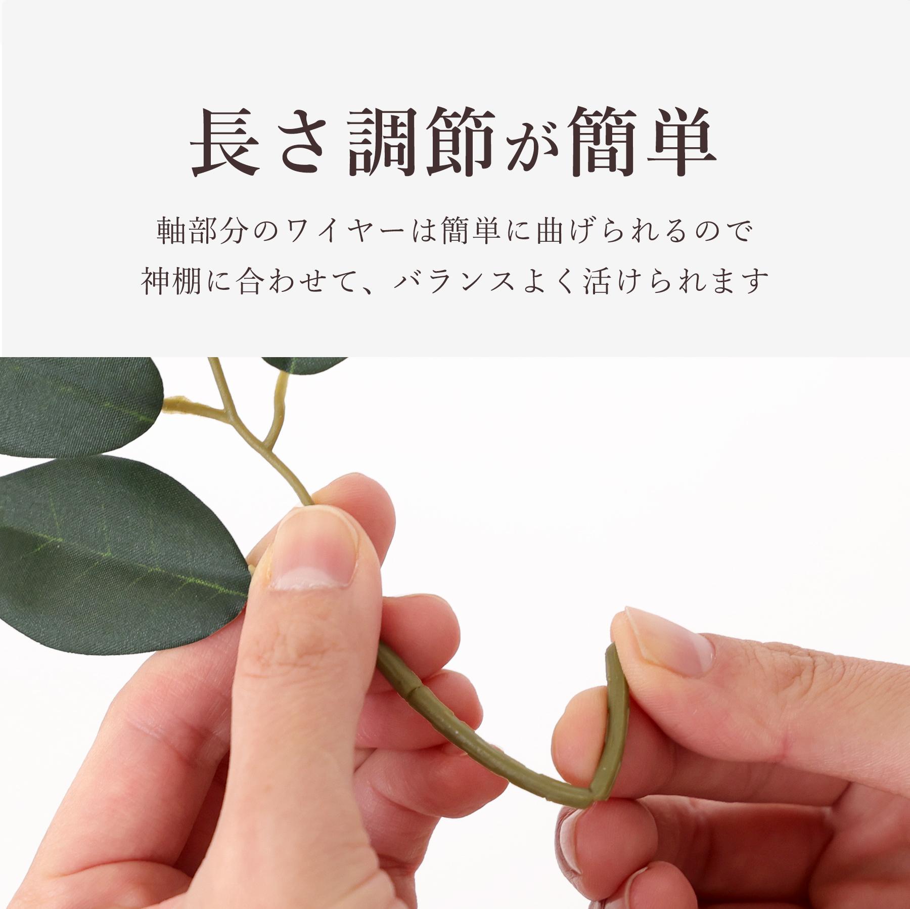 季節や環境に左右されず長く使用できる点も、日々のお祀りを続けやすくする特徴です。 枝の部分は折り曲げて高さ調整が可能です。場所に合わせたバランスを整えやすい実用性が使いやすさを支える魅力です。 |