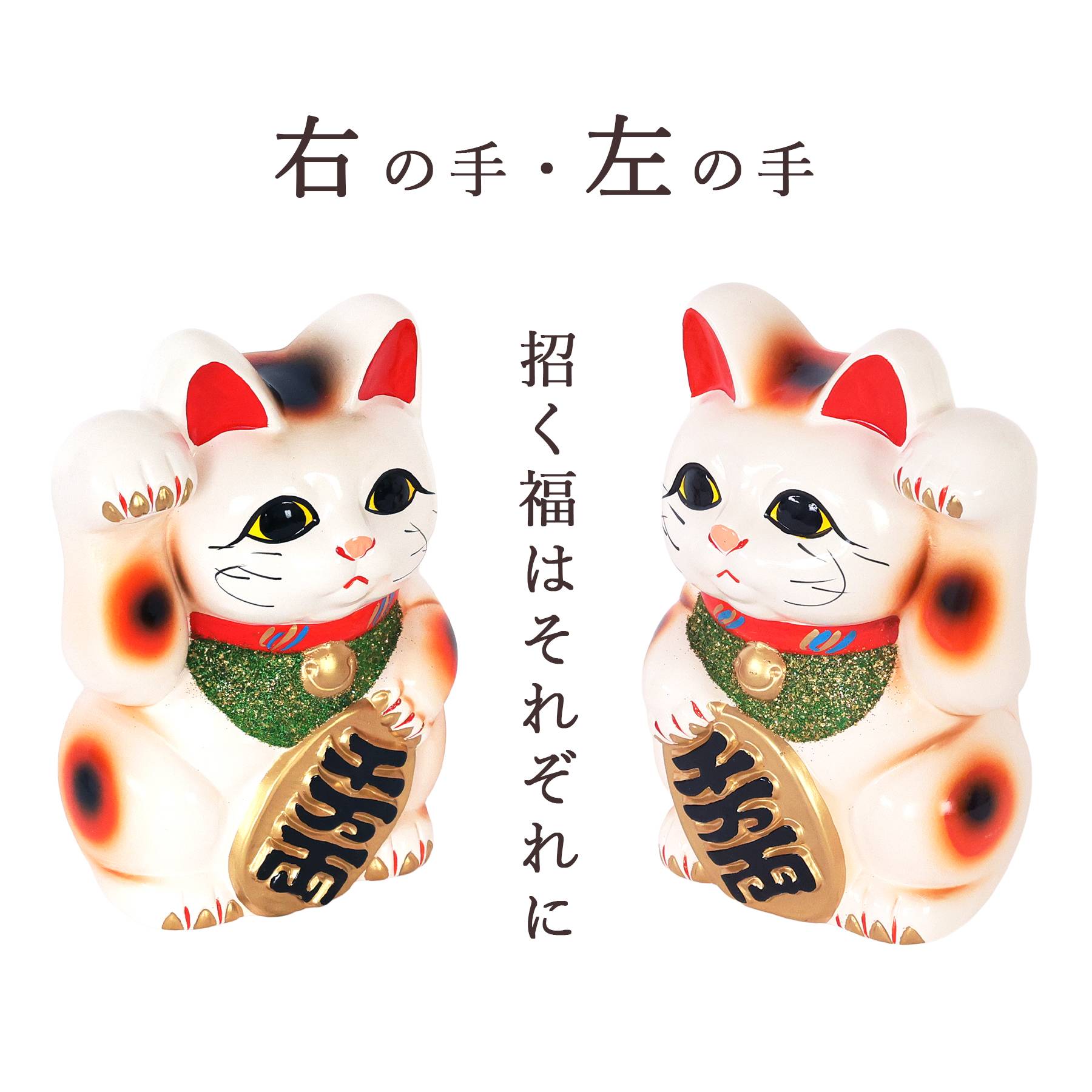 右手を挙げた猫は「金運・商売繁盛」、左手は「人やご縁を招く」と言われ、願いや用途に合わせてお選びいただけます。 |