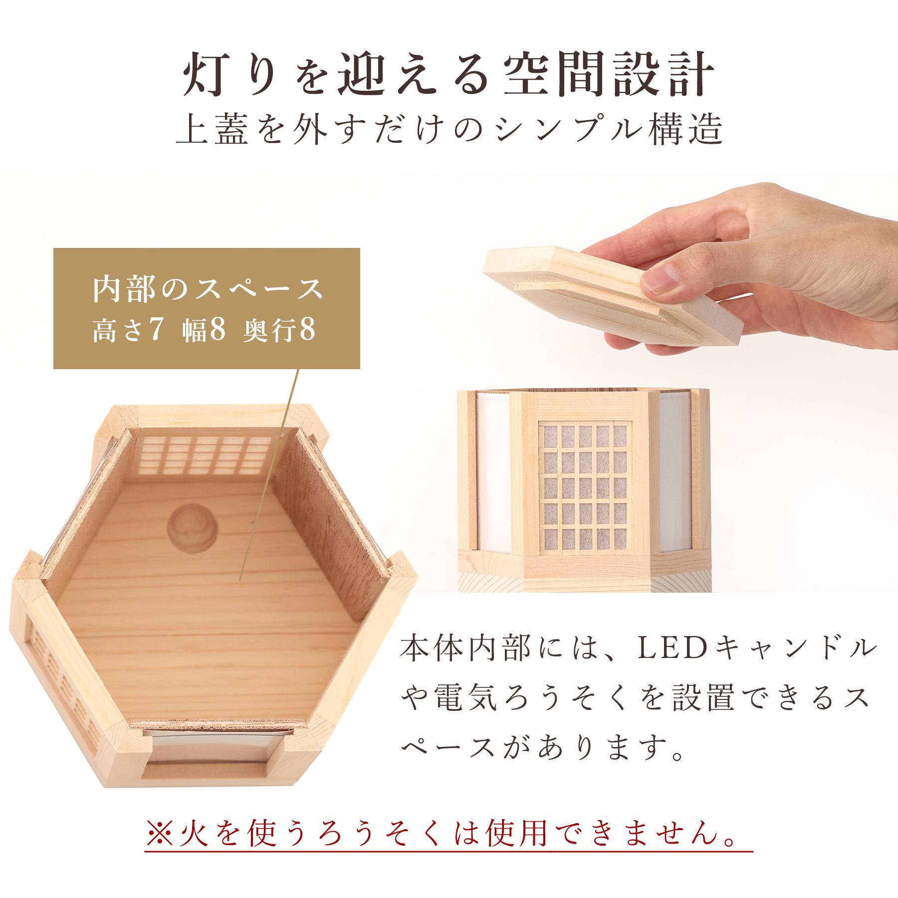 上部は取り外し可能な仕様で、内部にはLEDろうそくを設置できるスペースがあります。