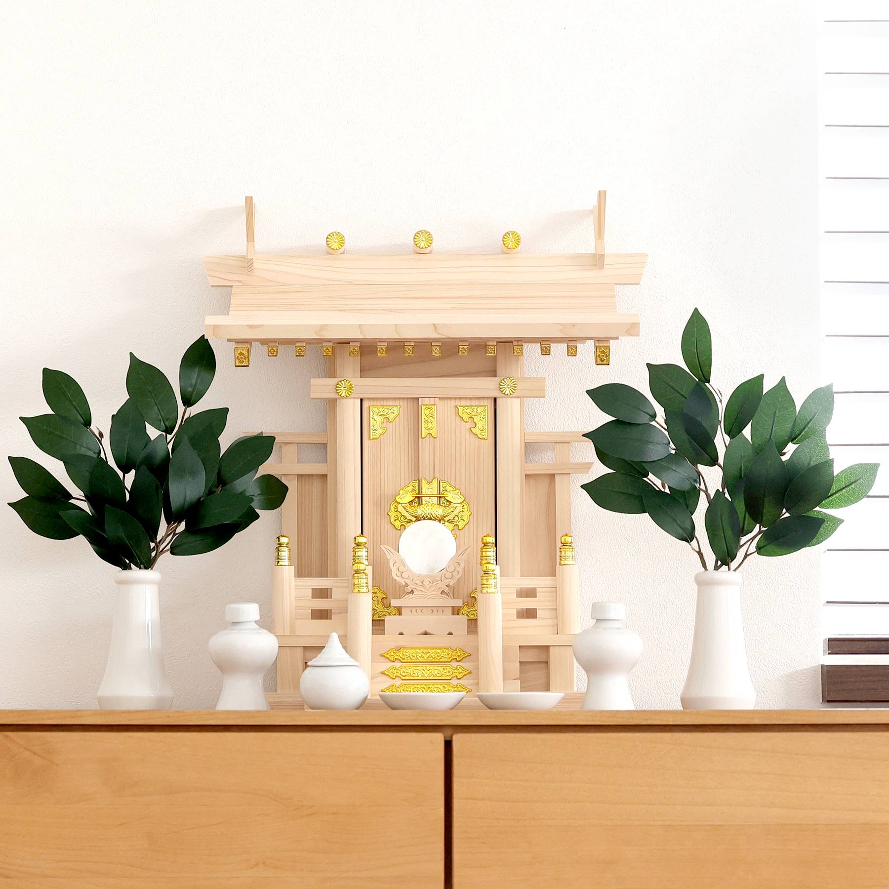 清らかな木目と、丁寧に施された金具の装飾が、神聖な場にふさわしい品格を演出します。