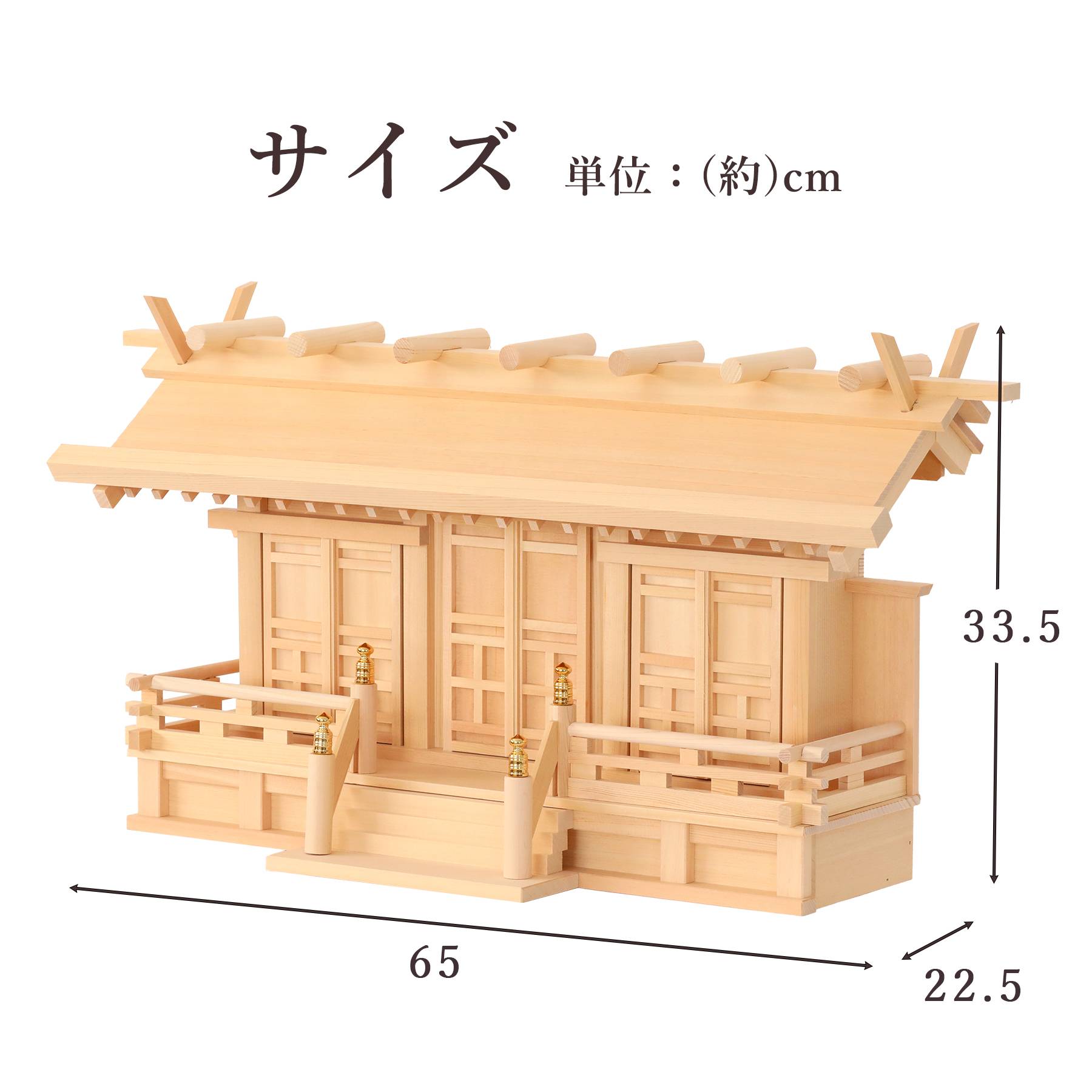 【匠造り 木曽ひのき】低床 通し屋根 三社 中型 唐戸扉 パール神具セット
