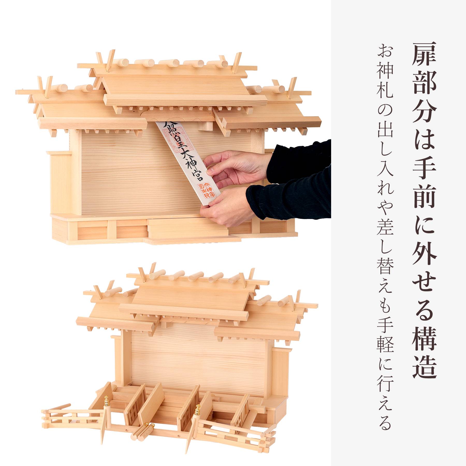 少しサイズの大きいようなお神札でも、扉を外すことで手軽にお収めいただけます。<br>