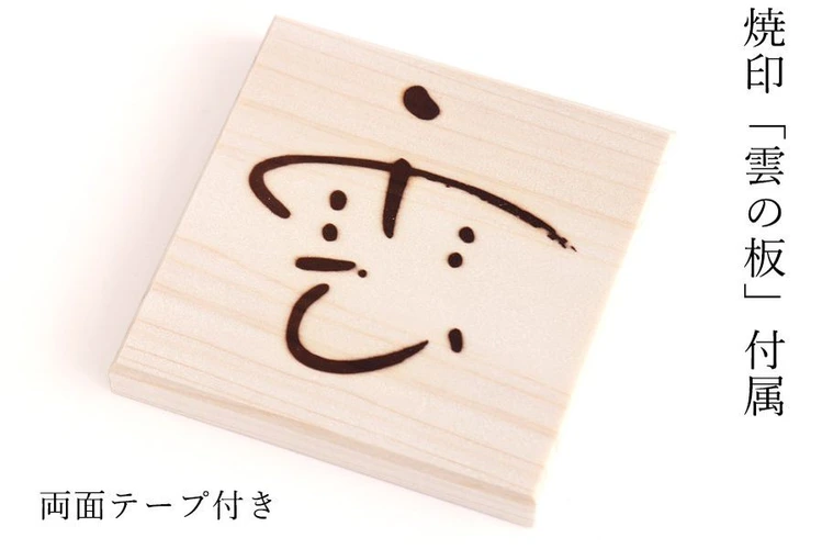 桧製「雲の板」、焼印を押してご進呈一階のお部屋、集合住宅など階上のあるお部屋での神棚設置は、「雲」と書いた紙や板を天井へ取付けするのがおすすめ。「 神札入れ 〜 沙羅 Sara 〜」をお求めの方にただいま、「雲」の焼印を一つ一つ手押した桧製の雲板をご進呈しています。 |