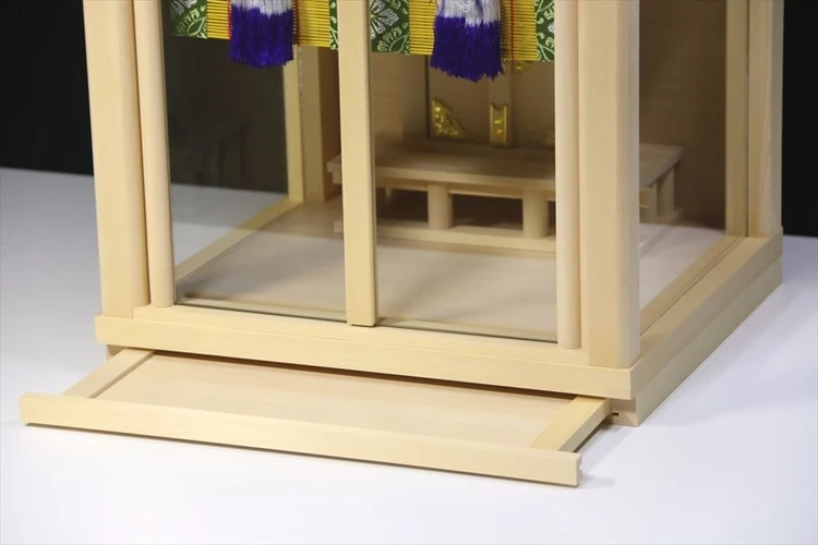 引き出し付き構造のため陶器やお供え物など、必要十分な神具を設置することができます。